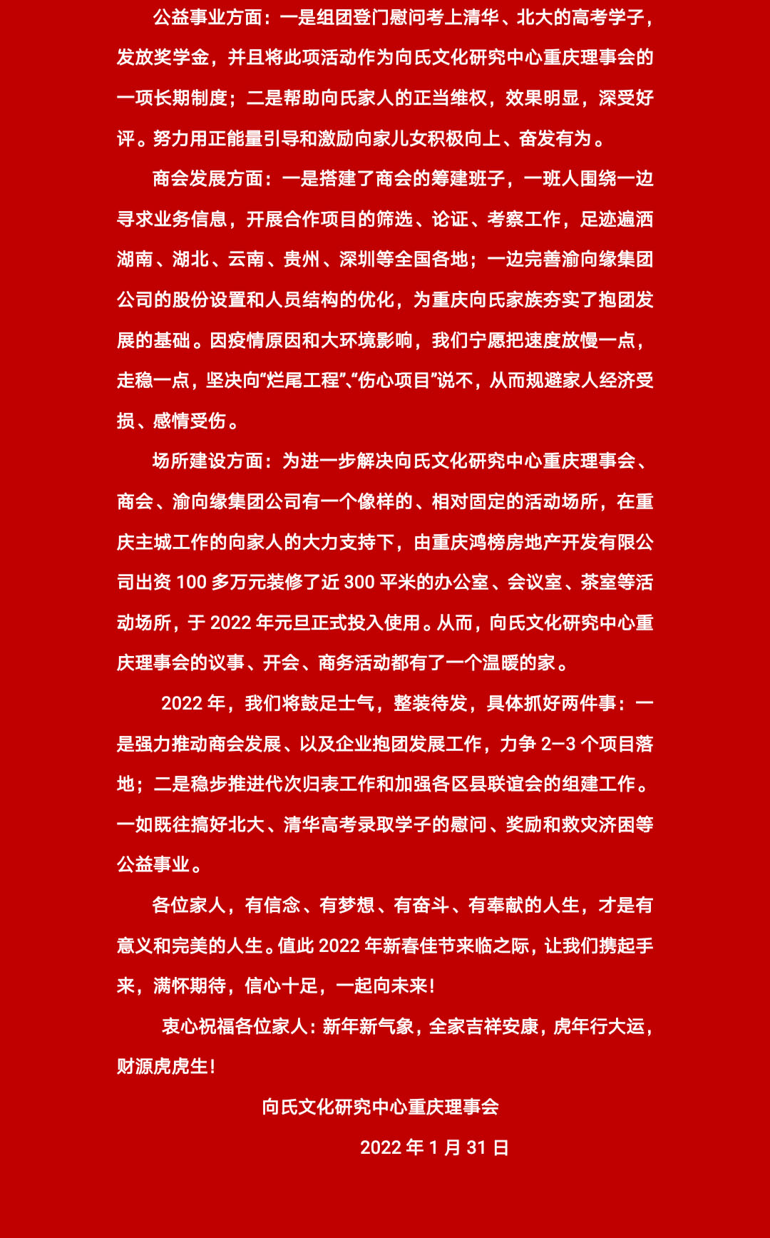 向氏文化研究中心重庆理事会新春献辞