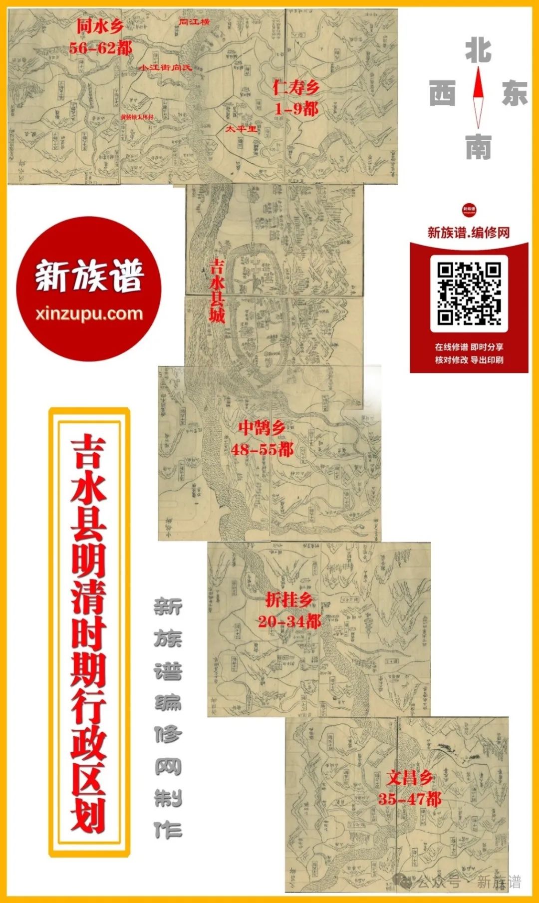 为了理清明清各姓名家族人口分布情况,新族谱(xinzupu.com)编修网技术人员根据光绪吉水县志制作出吉水县疆域形势图、明清时期吉水县行政区划图以及助资修吉水县志尚义录,古地图便于查找古地名大致方位,尚义录以行政摊派的方式募资,姓氏堂口反映了当时家族姓氏的分布,助资的多少反映了祠堂的人口多少,特辑于此,以便对后续各家族姓氏到吉水县寻亲。】