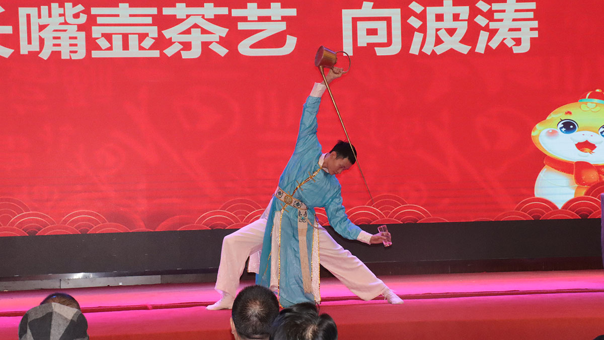 长嘴壶茶艺表演由向波涛带来,他以其精湛的技艺,营造了茶馆的文化氛围和民俗气息,提高了茶客的品茗乐趣。