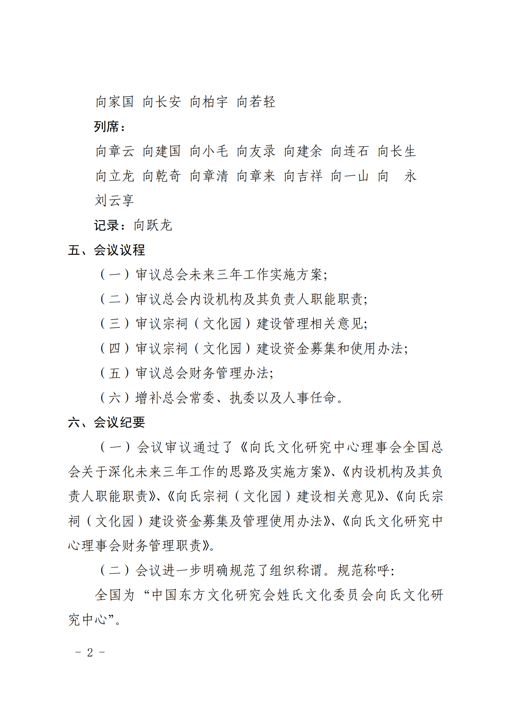 向氏文化研究中心理事会全国总会第四届七次执委会会议纪要