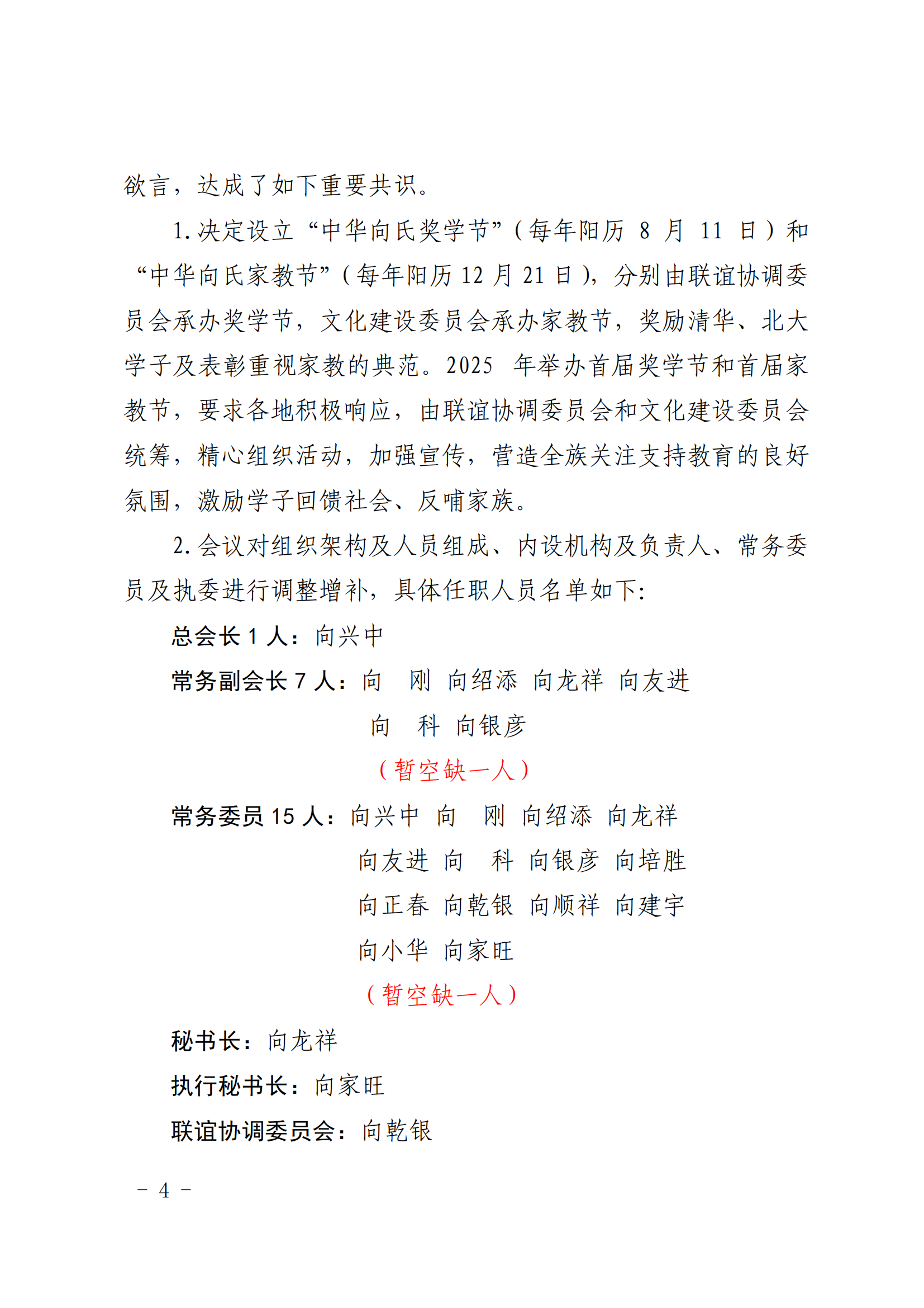 关于增补向家旺、向长安等宗亲为常委、执委的通知