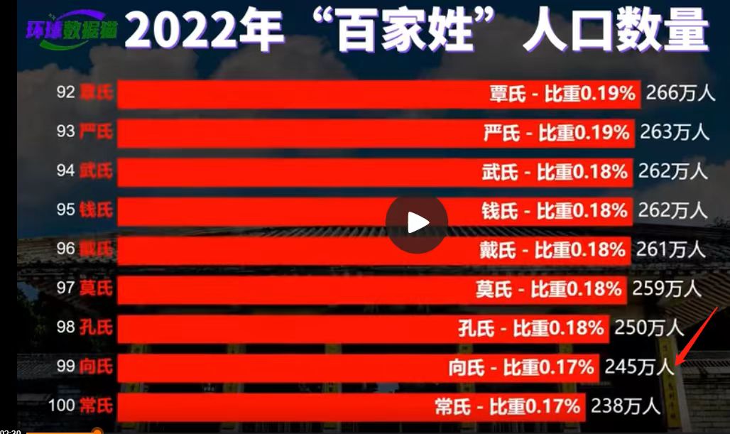 误区考辨:“向姓在《百家姓》中排129位” 配图:网传向氏人口2022最新排名,来源未考证 《百家姓》是一部关于汉字姓氏的作品。成文于北宋初。原收集姓氏411个,后增补到504个,其中单姓444个,复姓60个。《百家姓》采用四言体例,而且句句押韵。是中国古..