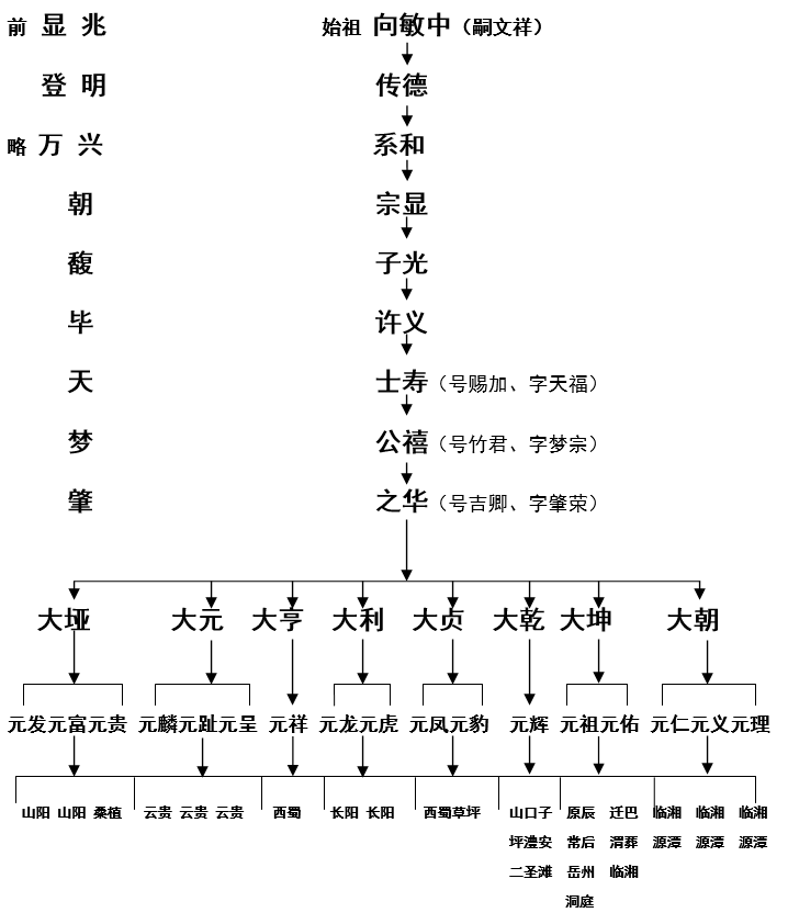 荣华十三家八耳锅岳阳版本 源流世系直系对照一览表[1拼接版] 【据向欣荣整的岳阳渭洞《向氏族谱》及平江七修族谱(康熙二年癸卯始修、乾隆廿八年癸未二修、咸丰六年丙辰三修、宣统元年己酉四修)2016年国庆2018年劳动节拜访整合】 【注:1,该世系..
