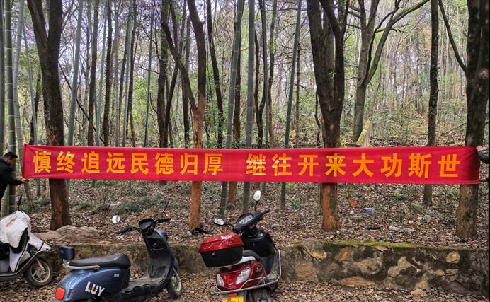 跨三十世共襄盛举越六百载阖家聚会黄梅向氏重修二、三、四、五世祖墓竣工典礼在马尾山隆重举行二零二五年腊月初十上午,湖北黄梅县马尾山南车水马龙,人声鼎沸。黄梅向氏宗族一百四十多位代表在此隆重集会,举行重修祖宗墓碑竣工典礼。县河以东的马尾山鸡鸣庙西,典礼现场拉起了大红横幅。“慎终追远民德归厚,继往开来大功斯世”、“用心立碑铭记先祖,以德化人泽润后世”,点明了全族重修祖宗墓碑的意义。苍松翠柏簇拥的向氏祖宗墓地,花岗岩碑鼓镶嵌黑色碑牌,厚重典雅,庄严肃穆。描金碑文金光闪耀。三座墓碑后面的地下,长眠..