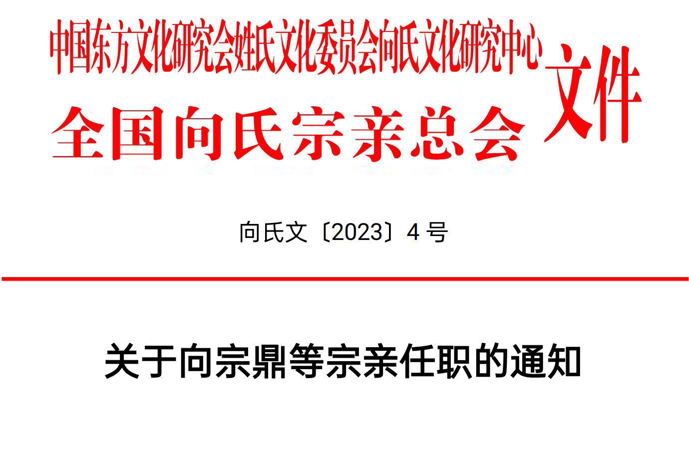 向氏文〔2023〕4 号:关于向宗鼎等宗亲任职的通知